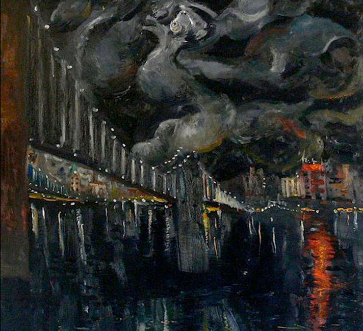 The city, viewed in various seasons and times of day and night, provides one of the artist's recurring motifs.