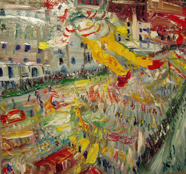 ![]() Thanksgiving Day Parade oil/linen 50x54in |