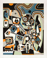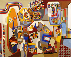 During this period, Wheeler began to spin many paintings out of each of his motifs, typically initiating his experiments in gouaches. The result would be a kaleidoscopic interplay of motifs in an "all-positive space," with ever-changing relationships between objects and ground. Out of these simultaneous sensations emerged a sense of urgent, non-linear narration.